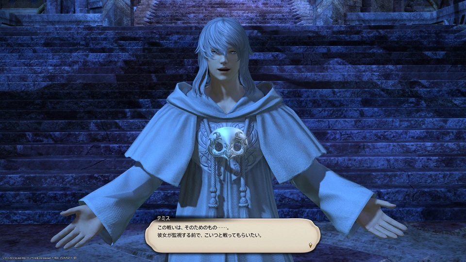 申請する前にエリア名が十四座の間ということに気づいた時点で動揺が激しかったんですが、いざコンテンツ入ったらめちゃくちゃ綺麗なところだしテミスくんは喋るし美しいし転身するしで戦う前から泣いてました むり たすけて